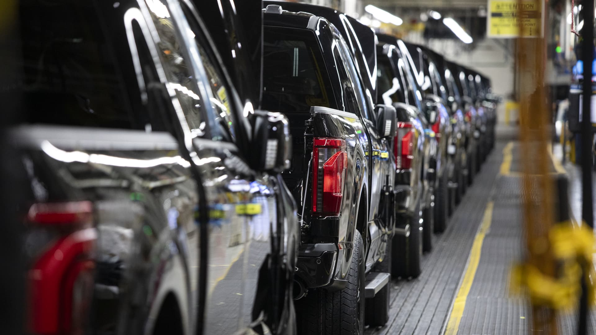 Uusi Ford F-150 -kuorma-auto vierii Ford Dearbornin tehtaan kokoonpanolinjan läpi 11. huhtikuuta 2024 Dearbornissa, Michiganissa.