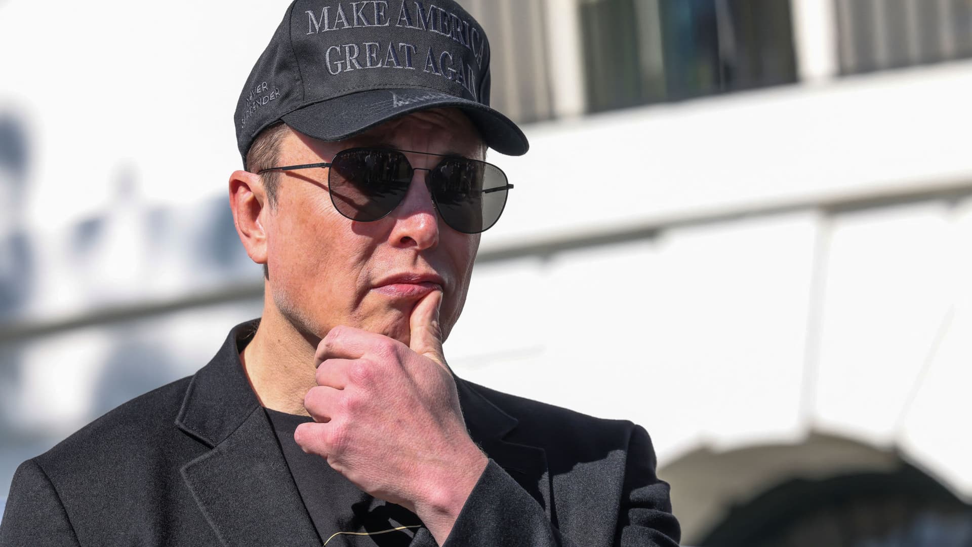 Teslan toimitusjohtaja Elon Musk seurasi presidentti Donald Trumpin puhetta Washingtonin Valkoisen talon ulkopuolella sijaitsevan tiedotusvälineiden kanssa 11. maaliskuuta 2025.
