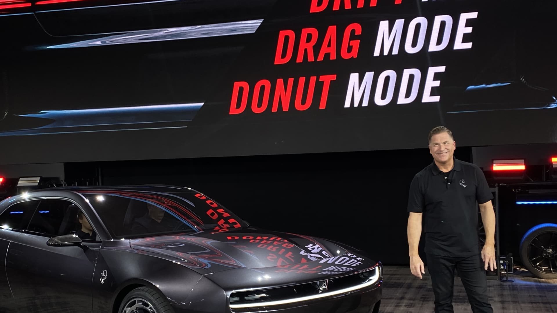Dodgen toimitusjohtaja Tim Kuniskis esitteli Charger Daytona SRT -konsepti sähköisen lihasauton 17. elokuuta 2022 Pontiacissa, Michiganissa.