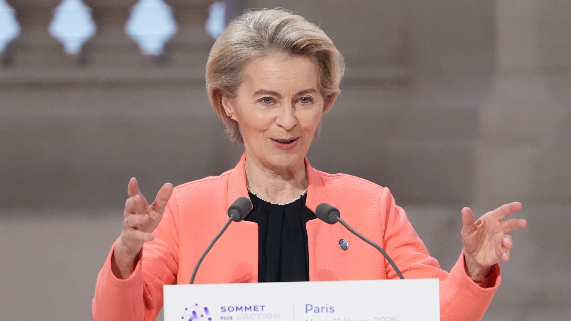 Euroopan komission presidentti Ursula von der Leyen puhuu AI -toimintakokouksessa Pariisissa, Ranskassa, tiistaina 11. helmikuuta 2025.
