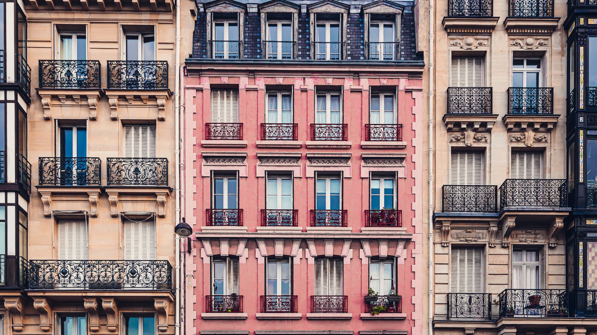 1800-luvun tyyliset asuinrakennukset Pariisin historiallisessa keskustassa, Ranskassa.