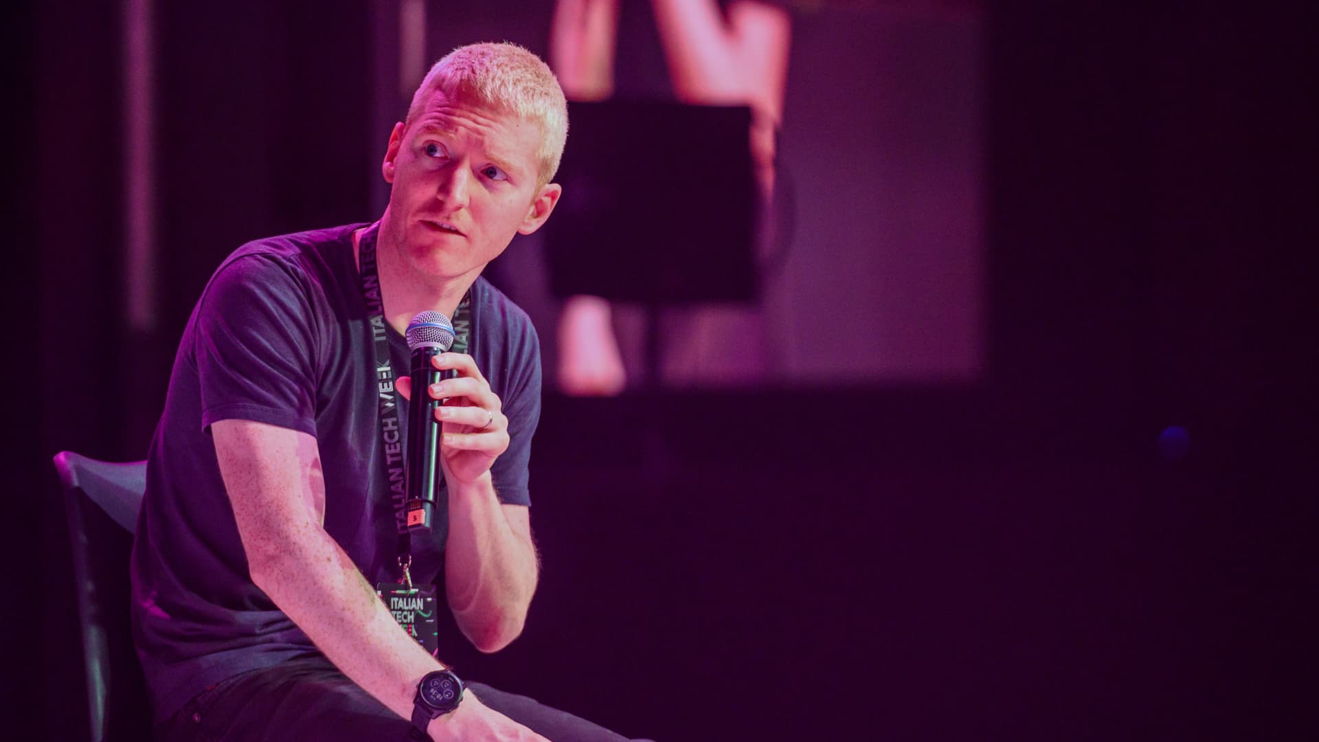 Patrick Collison, Stripen toimitusjohtaja ja toinen perustajista, puhumassa Italian teknologiaviikolla 2022 Torinossa, Italiassa.