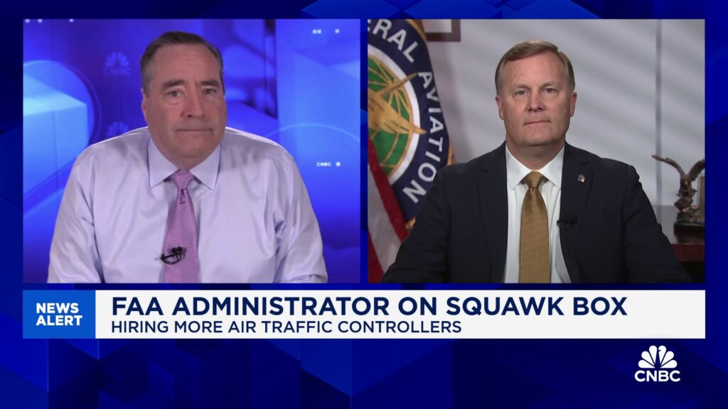 CNBC: n Phil Lebeau ja FAA: n järjestelmänvalvoja Chris Rocheleau liittyvät ‘Squawk Boxiin’ keskustelemaan enemmän lennonjohtajien palkkaamisesta, DCA -onnettomuudesta, ruuhkista ilmatilassa, Boeingin turvallisuusstandardit ja paljon muuta.