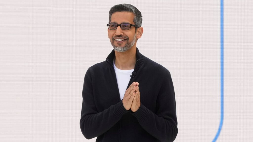 Aakkosten toimitusjohtaja Sundar Pichai puhui Google I/O -tapahtumassa Mountain Viewissä, Kaliforniassa tiistaina 20. toukokuuta 2025.
