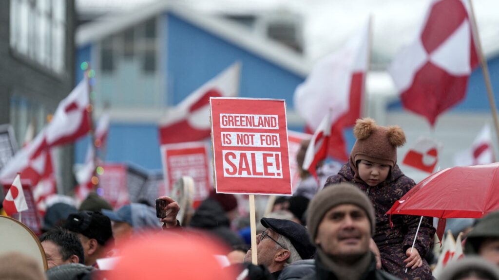 Grönlannin pääkaupungissa Nuukissa ja Tanskan Kööpenhaminassa on viime päivinä järjestetty mielenosoituksia, joissa ihmiset ovat marssineet Grönlannin punavalkoisten lippujen kanssa.