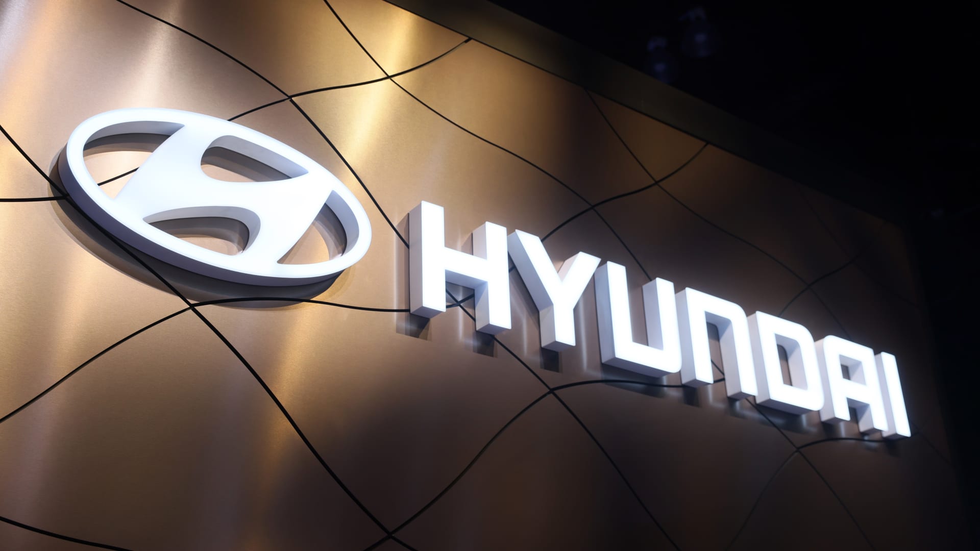 Hyundai-logo on esillä vuoden 2023 Los Angelesin autonäyttelyssä Los Angelesin kongressikeskuksessa 24. marraskuuta 2023 Los Angelesissa, Kaliforniassa.