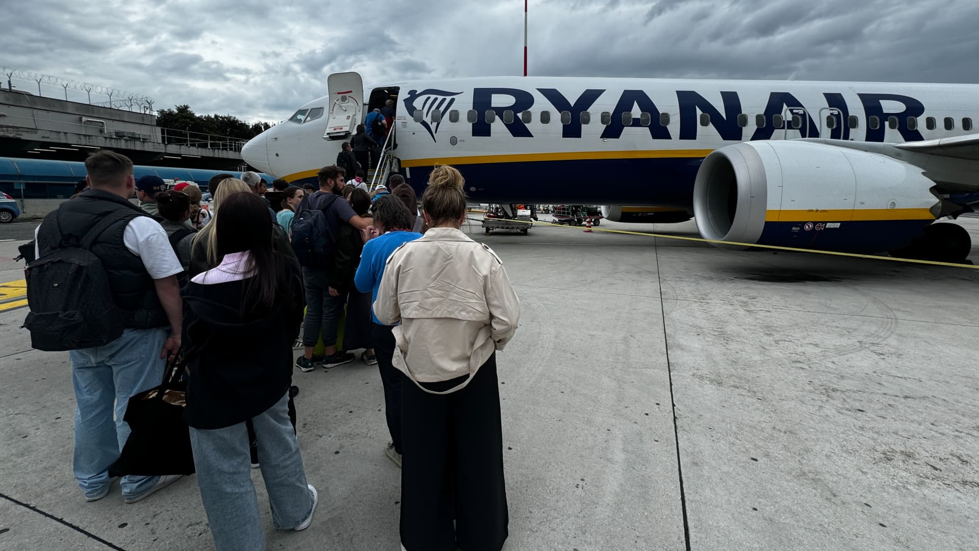 People Board Ryanair -lentokone Rooman Ciampino -lentokentällä Ciaminossa, Italiassa 27. huhtikuuta 2025.