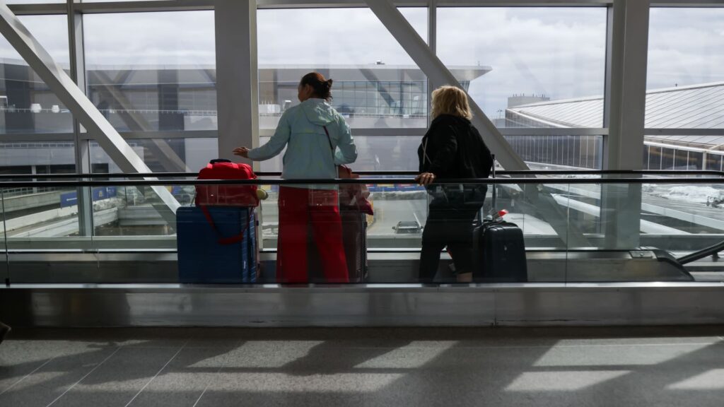 Matkustajat terminaalissa 1 John F. Kennedyn kansainvälisellä lentoasemalla (JFK) New Yorkissa, Yhdysvalloissa, sunnuntaina 1. maaliskuuta 2026.