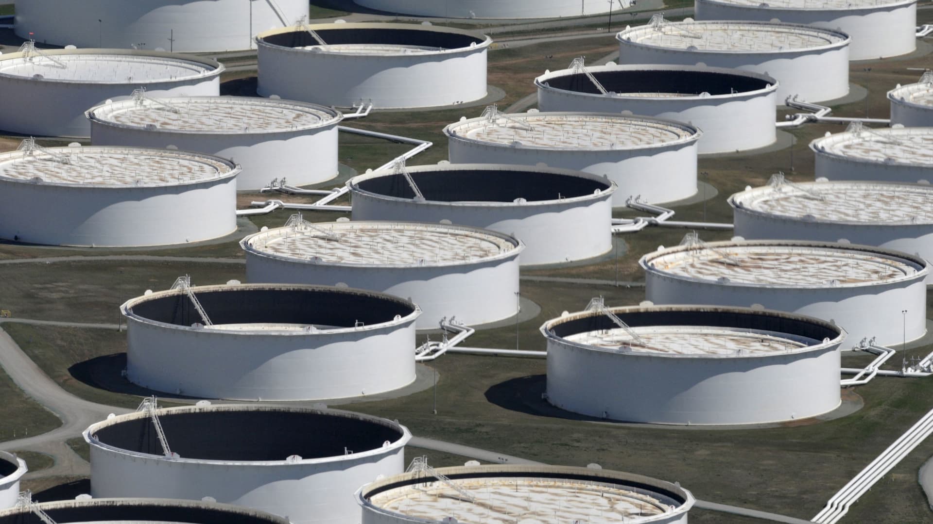 TIEDOSTOKUVA: Raakaöljyn varastosäiliöt näkyvät ylhäältä Cushingin öljykeskuksessa, ja niiden tila näyttää olevan loppumassa historialliseen tarjontaan, joka on painanut hintoja, Cushingissa, Oklahomassa, 24. maaliskuuta 2016. Kuva otettu 24. maaliskuuta 2016.