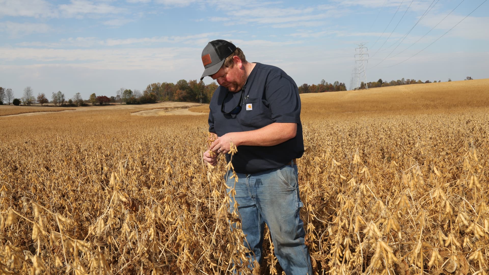 Soijaviljelijä Caleb Raghland maatilallaan Magnoliassa, Kentucky