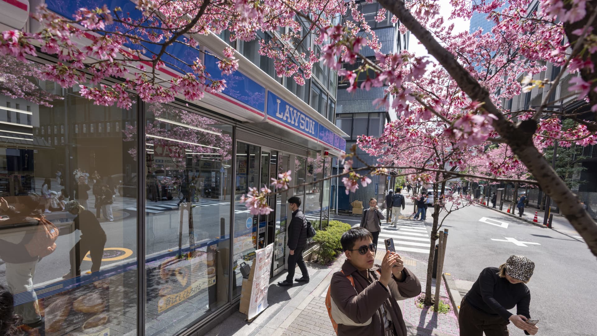 Turistit ottavat valokuvia varhaisista kukkivista Sakura -puista Tokion lähikaupan edessä. Tokion varhaiset kukkivat sakurapuut, etenkin Kawazu-Zakuran kaltaiset lajikkeet, alkavat tyypillisesti kukinnan helmikuun lopulla maaliskuun alkuun, ennen yleistä Yoshino-kirsikankukkia, jotka huippuvat maaliskuun lopulla huhtikuun alkuun. Ilmiö on sidottu lievempiin talveen ja tiettyihin lajikkeisiin tarjoamalla elinvoimaisen vaaleanpunaisen spektaakkelin Tokion kaupunkien taustalla ennen kuin pääkirsikankukkakausi alkaa.