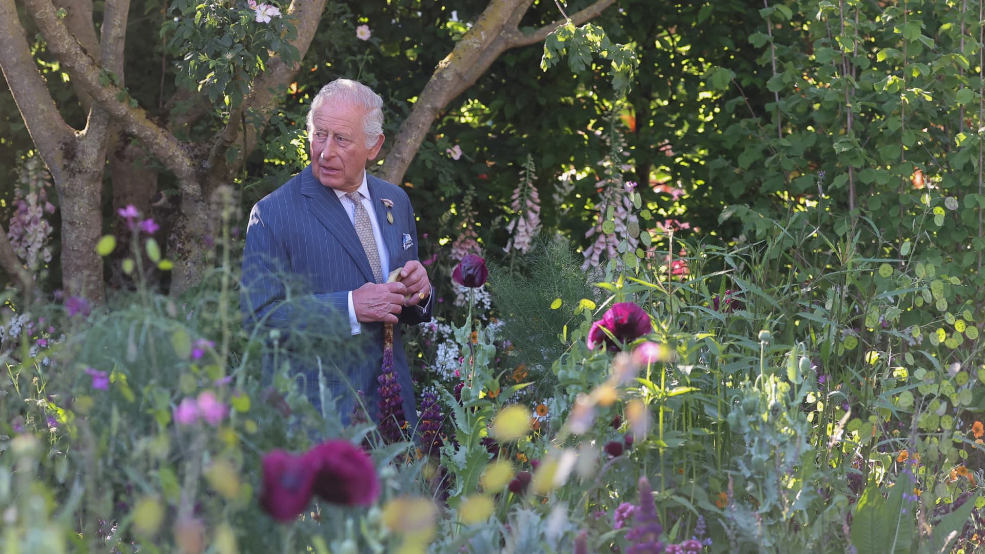 Kuningas Charles III, kuninkaallisen puutarhaviljelyyhdistyksen suojelija, kävelee RHS: n ja BBC Radio 2 -koiran puutarhan läpi vierailun aikana RHS Chelsean kukka -näyttelyssä Royal Hospital -sairaalassa Chelseassa 20. toukokuuta 2025 Lontoossa, Englannissa.