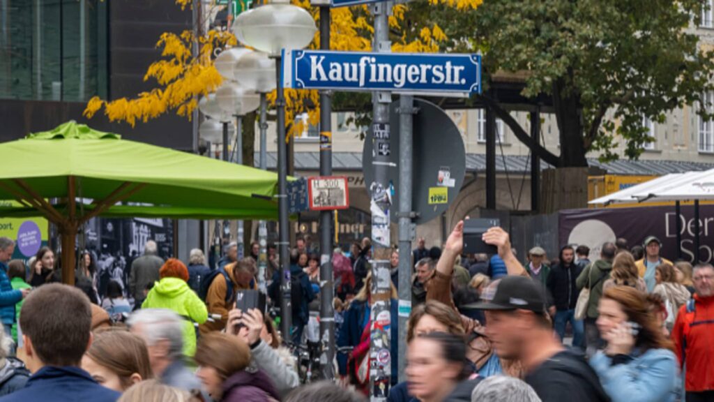 Ohikulkijat kävelevät Baijerin pääkaupungin jalankulkualueella.