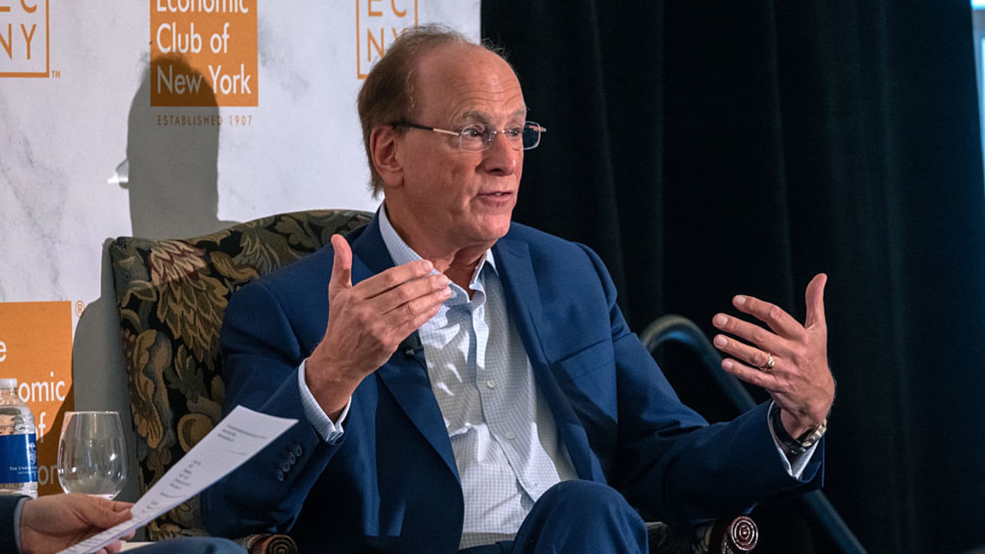 “Suurin osa toimitusjohtajista, joiden kanssa puhun, sanoisivat, että olemme todennäköisesti taantumassa”, Fink sanoi New Yorkin talouskerhon tapahtumassa.