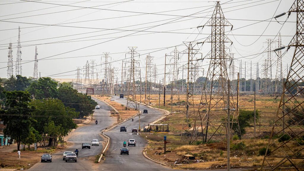 Tämä näkymä näyttää sähkötorneja yhdellä Venezuelan Maracaibon kaduista 1. helmikuuta 2026.