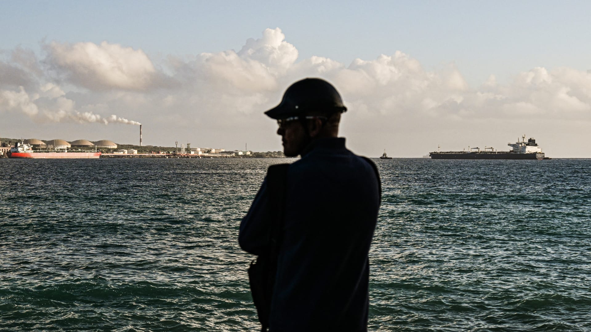 Mies seisoo hinaajana ohjaamassa venäläistä öljytankkeria Anatoli Kolodkinia öljyterminaalissa Matanzasin satamassa Luoteis-Kuubassa 31.3.2026.
