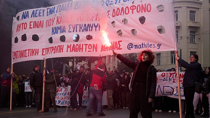 Tuhannet opiskelijat estävät Ateenan liikenteen viivästyksillä Temphi Rail Crash Crash -koettimeen
