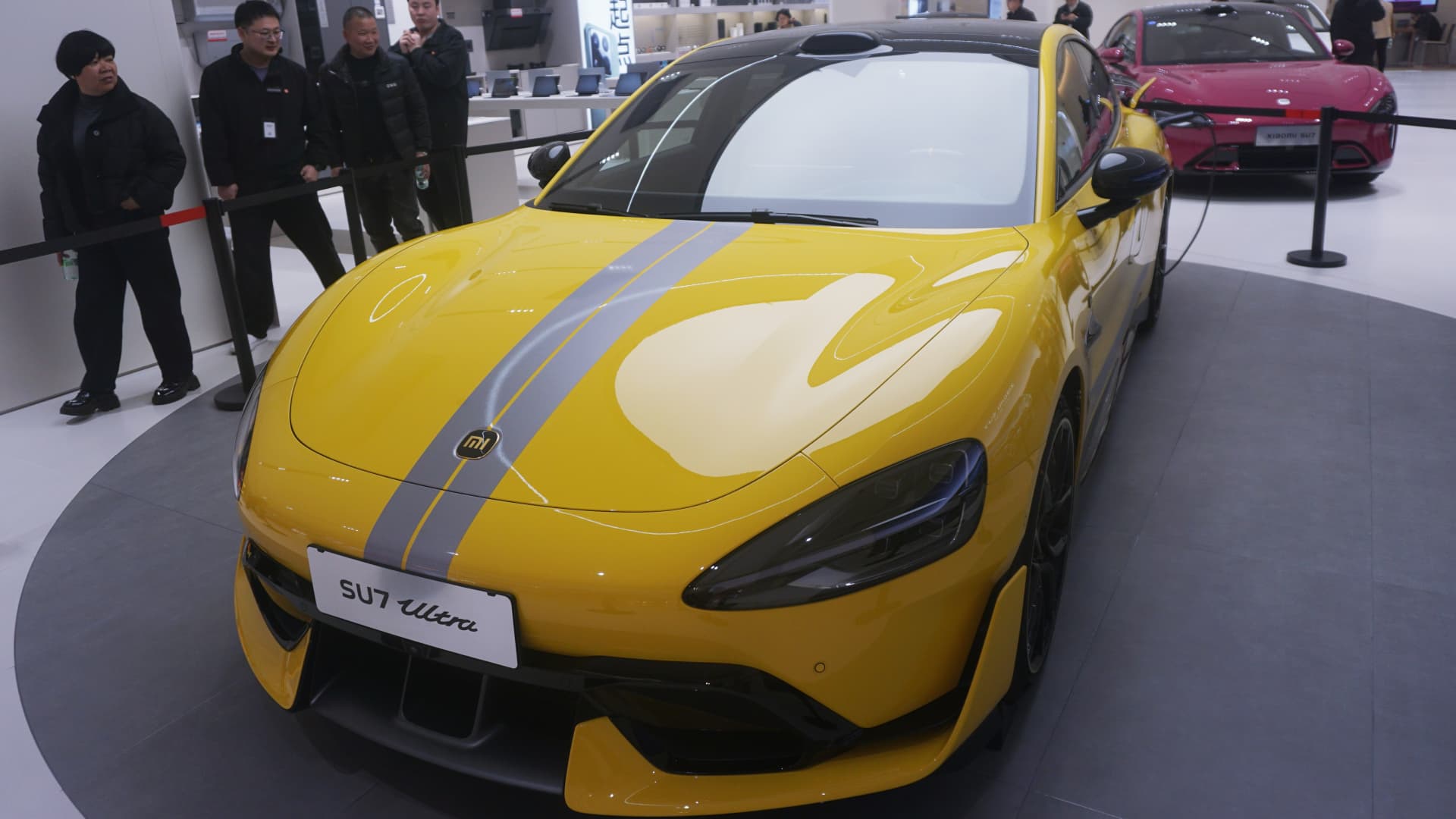 Tällä viikolla Xiaomi käynnisti ensimmäisen premium -sähköautonsa Kiinassa nimeltään SU7 Ultra, joka alkaa 529 000 yuanista (72 627 dollaria). Lu sanoi, että auto sai 15 000 tilausta 24 tunnissa ja on esillä MWC: n yrityksen osastolla.