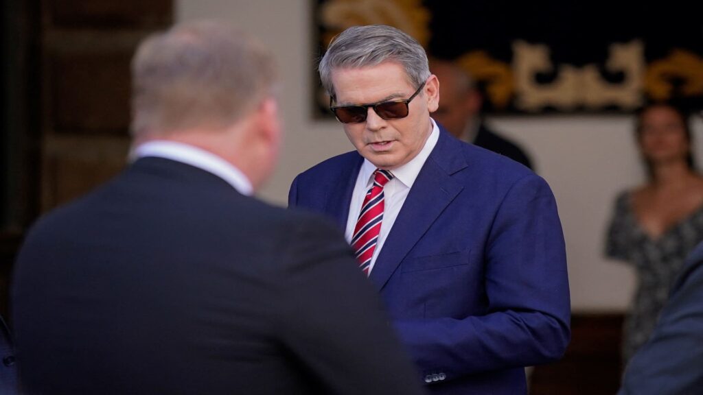 Yhdysvaltain valtiovarainministeriö Scott Bessent saapuu tapaamaan Espanjan ulkoministeri Jose Manuel Albaresia jatkamaan keskusteluja kaupasta, taloudellisesta ja kansallisesta turvallisuudesta, Madridissa 14. syyskuuta 2025.